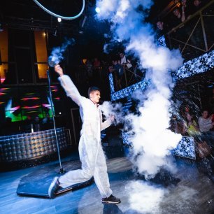 Несомненно, артисты свадебных шоу-программ, например, танцоры, вокалисты, акробаты, ходулисты, фокусники и многие другие украсят ваш праздник и удивят гостей. Ярким моментом на вашей свадьбе будут артисты, встречающие гостей. Благодаря им ожидание молодожёнов пролетит просто незаметно. Вы можете пригласить как музыкантов, так и мимов или художников-шаржистов. Ещё советуем подготовить завершающий и самый эффектный акцент свадебной церемонии – огненное и лазерное шоу, грандиозный музыкальный салют или запуск небесных фонариков.